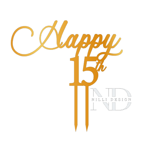 Happy 15th Topper in de maten BxH 15x15cm